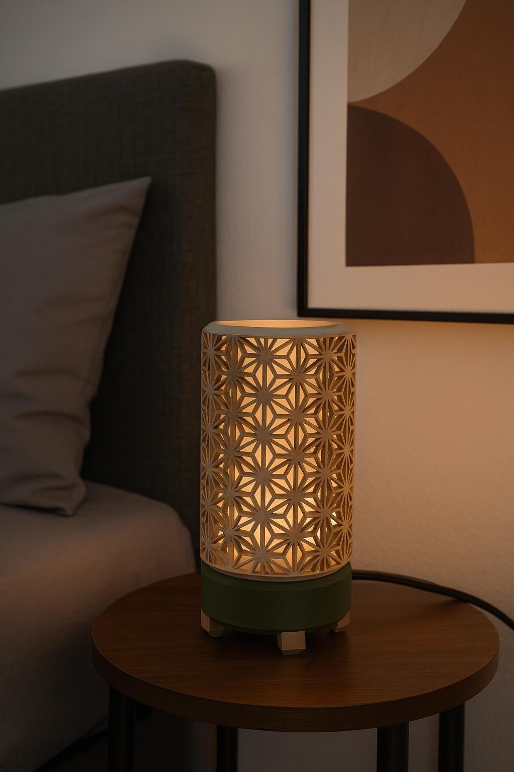 This unique lamp combines modern 3D printing technology with timeless Japanese aesthetics. The delicate pattern is inspired by the traditional Kumiko woodcraft technique and creates a mesmerizing play of light and shadow.